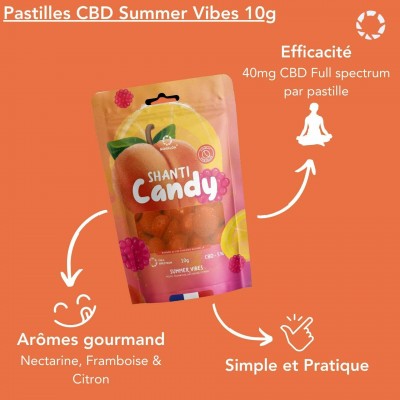 Conditionnés dans un pratique sachet refermable de 10g, ces bonbons artisanaux français allient le plaisir gustatif des fruits d'été à la douceur apaisante du CBD. Une alternative savoureuse pour profiter des bienfaits du cannabidiol au quotidien.