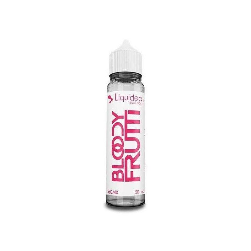 Le Bloody Frutti 50ml Evolution de Liquideo se présente dans un flacon épuré au design moderne, arborant le logo distinctif de la marque en rose vif sur fond transparent. Cette création s'inscrit dans la gamme Evolution, reconnue pour ses mélanges fruités sophistiqués.