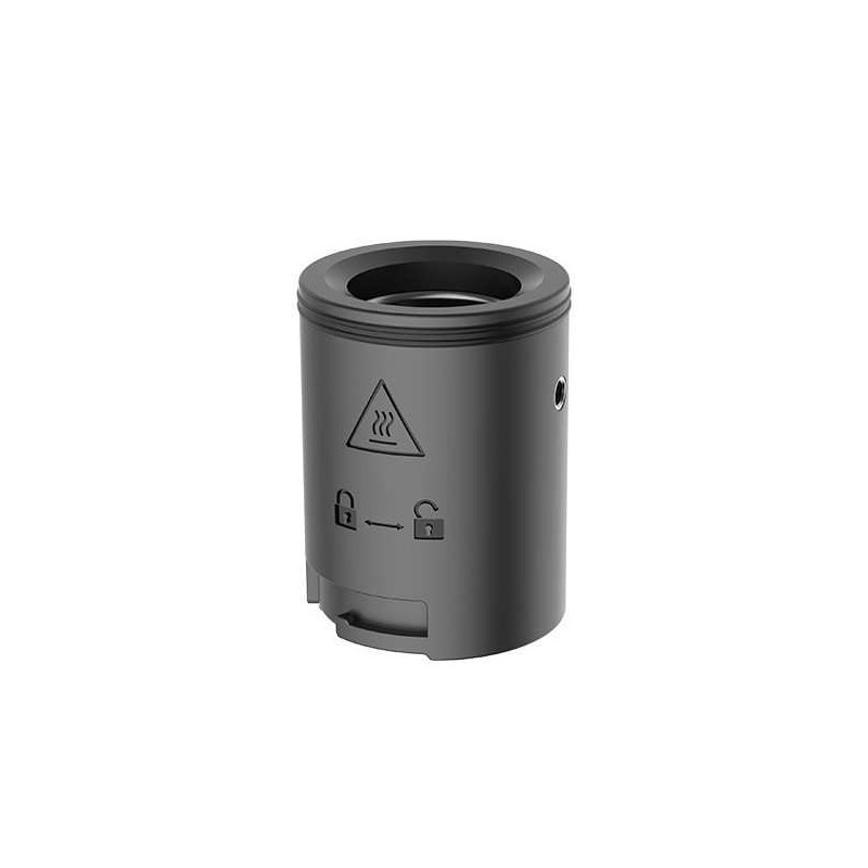 L'appareil présente une forme cylindrique parfaitement équilibrée, avec des dimensions optimisées pour une prise en main confortable. Les rainures du corps facilitent la manipulation, même avec des mains moites. Le joint d'étanchéité assure une fermeture hermétique, préservant ainsi les arômes de vos concentrés.